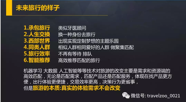 总结一下:无论未来技术多么强大,依然不会改变旅游的本质——也就是基于每个人的真实的体验需求。