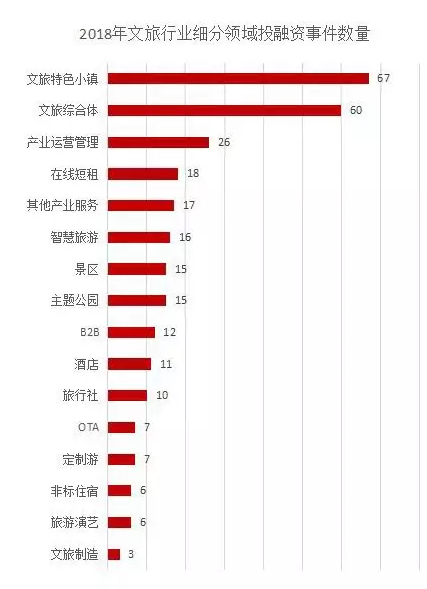 投融资事件数量最多的是目的地资源端的文旅特色小镇和文旅综合体项目,两者相加为129起,占全部投融资事件数量的43.6%。