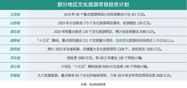 从各省份重点项目推进计划上看,各地方政府对于发展文化旅游业的决心也可见一斑。据了解,在已公布的各省级行政单位重点项目计划中,文旅项目的投资都成为其中重要的板块。与此同时,个别省份在2019年计划推进的重点文化旅游项目甚至达上千个,计划投资总额最高达3000亿元。