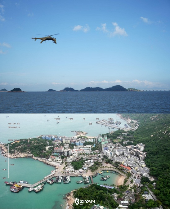 紫燕无人机在某旅游岛进行空中巡逻时,吊舱拍摄画面