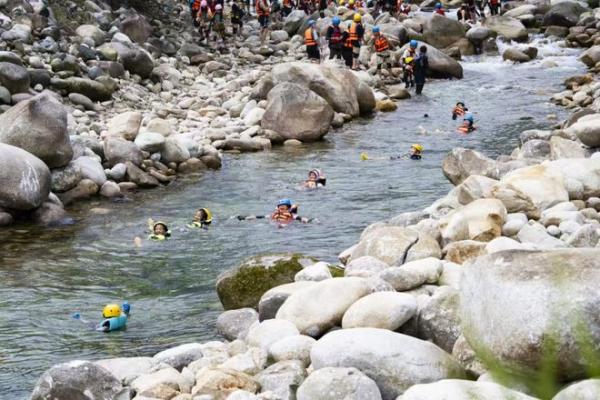 在广西桂林猫儿山景区,一种被称为“窝囊漂”的旅游项目人气颇旺。这一项目区别于传统主打惊险刺激的漂流,以慢节奏、松弛感为调性,游客可以卧躺在水面,享受漂流乐趣。