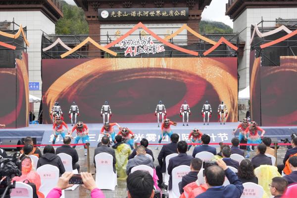 10月18日,第二十三届四川光雾山国际红叶节开幕式上,多台机器人与舞蹈演员同台演绎国家级非遗《翻山铰子》。金属机械臂随传统韵律翻飞,与演员的灵动舞姿相映成趣,刚劲的非遗动作与科技感十足的机械运转完美融合,瞬间点燃现场氛围。