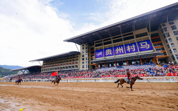 马蹄声响,吹响乡村振兴的号角;赛道蜿蜒,延伸农文体旅融合发展的新路径。随着闸门打开,骑手们驾驭骏马如离弦之箭飞驰而出,在1601米的专业赛道上扬起尘土,看台上两万名观众的欢呼声此起彼伏。这项源于水族端节的赛马习俗,如今已跃升为黔南州三都水族自治县的“贵州村马”品牌,成为继“村超”“村BA”之后又一个“村字号”爆款IP。