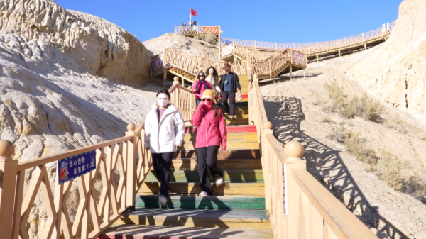 福海县海上魔鬼城景区位于乌伦古湖入海口,总面积约270平方公里,是极具代表性的雅丹地貌景观区。2025年,该景区通过积极拓展多元消费场景,构建了“从陆地到水上、从传统到新潮”的立体化旅游布局。景区不仅拓展了新业态,新增水上飞人、滑翔伞等互动性强的项目,还引入太空舱酒店,填补特色住宿空白。