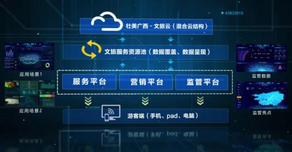 升级迭代后的“一云一池三平台”,实现了文旅系统数据治理、公共服务、管理运营的三端合一。这一系统构建起“1+1+3+N”数字化改革体系,建成服务端、治理端、营销端56个应用场景,推动广西文旅实现从前端服务到后端管理的流程再造与系统重塑。
